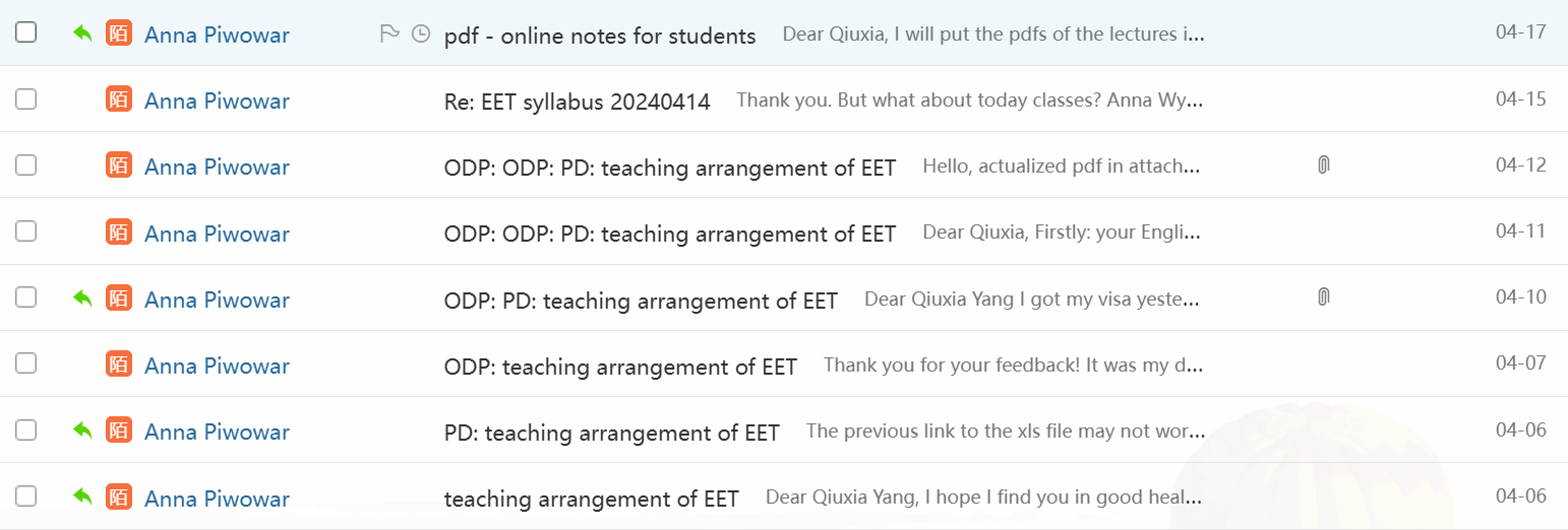 Before the start of the course, Chinese and Polish teachers, in accordance with the Sino-foreign joint curriculum standardization project, actively and effectively communicated and exchanged views via email on teaching content, teaching arrangements, and the development of students' cross-cultural communication skills. Based on the feedback from the previous semester, the course was comprehensively and carefully planned for this semester, and the content was optimized and adjusted. Figure 1 shows the email communication between Chinese and Polish teachers.