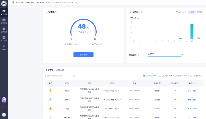在理论课程教学阶段,课程团队于第三周和第四周分别组织了两次课堂测验。中外教师提前协商,明确了每次测验所涵盖的知识范围、题型结构、题目数量以及考试时长与形式。两次测验均通过“雨课堂”平台统一实施。中方协助教师谈爱玲提前在系统中完成测试设置与发布工作。测验时间为20分钟,期间两位教师共同维持考场秩序,确保测验过程顺利进行。测验结束后,他们及时对学生的作答情况与成绩分布进行联合分析,通过数据反馈评估学生对知识点的掌握程度,为后续教学调整提供有效依据。图3为两次雨课堂随堂测验。