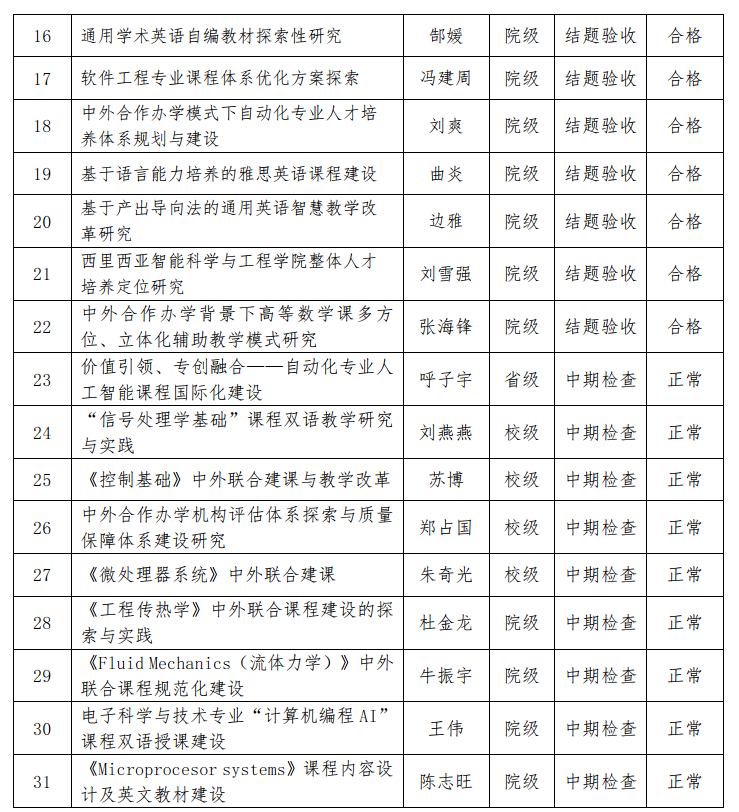 经学院组织专家评审,燕山大学西里西亚智能科学与工程学院2025年度教学研究与改革项目结题验收和中期检查结果如下,现予以公示: