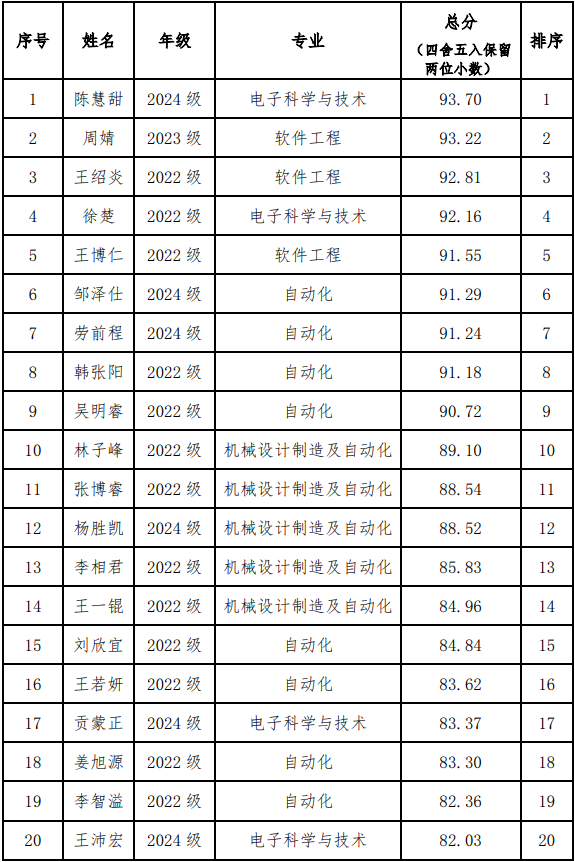 为提高西里西亚智能科学与工程学院国际化人才培养质量,提升学生全球胜任力,学院拟选派2022-2024级20名本科生赴波兰西里西亚技术大学参加2026年实习冬令营项目,经过本人申请、资格审核、学院评审,现将预录取名单公示如下: